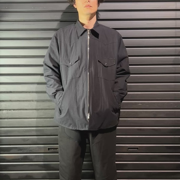 裏地が付き、吸湿発熱機能を持ったKOMATHERMOという素材を挟んでいるため薄手ですが保温性に優れたウエスタン調のジップシャツです。