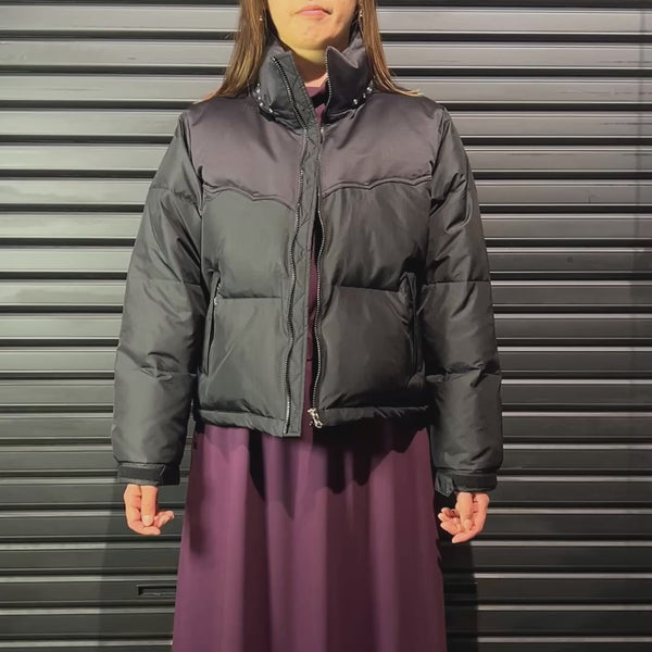 ウエスタンヨークと襟に打たれたクリスタルスタッズが特徴のダウンジャケット。