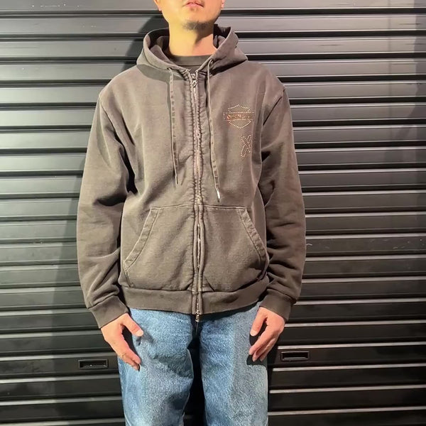 製品染めによるフロントのファスナーのうねりも特徴的。